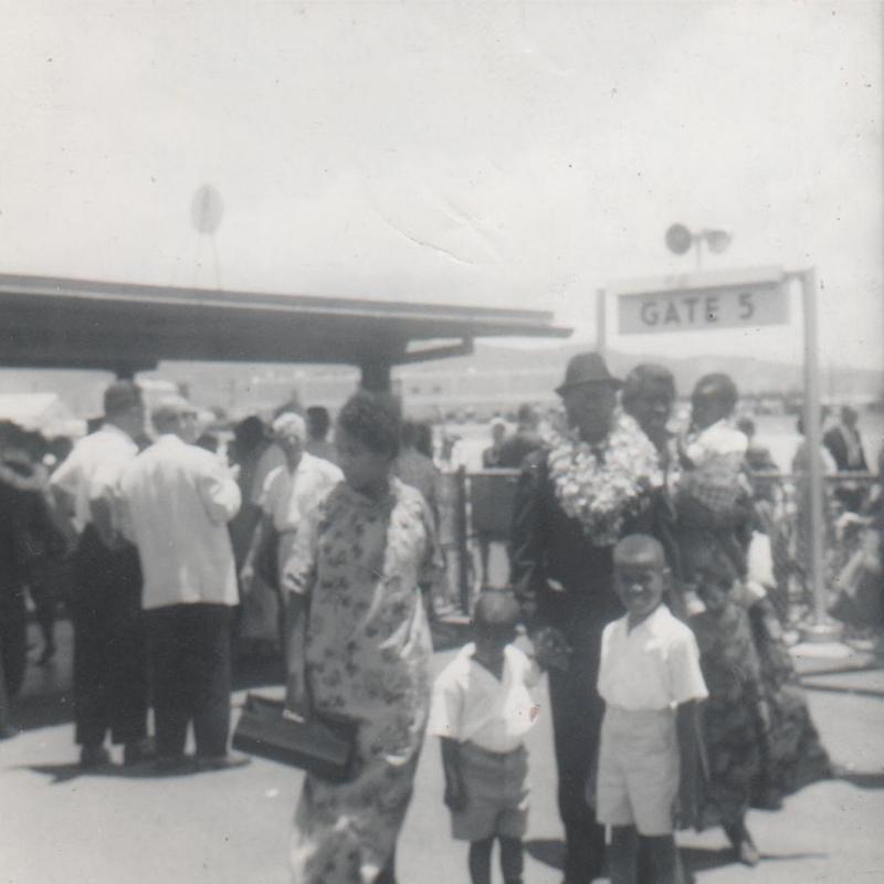 Uncle Charles, me my mother, and my 3 brothers: Patrick, Celester, and Charles Young at the airport in Hawaii...