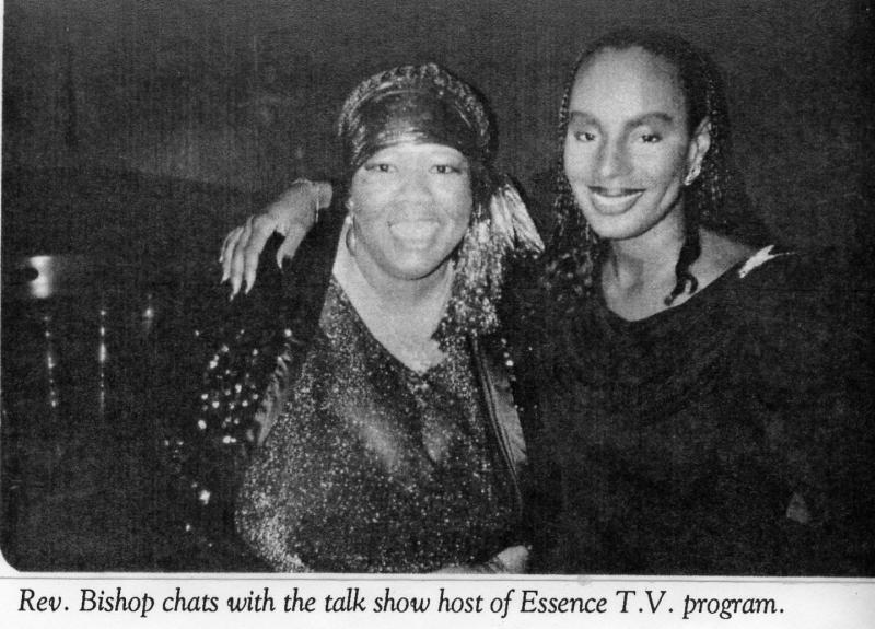 Rev. Bishop chats with the talk show host of Essence TV program Susan Taylor at the Essence Christmas party in New York City.
