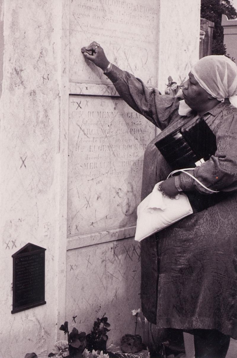 Dr. Bishop in front of St. Louis Cemetary Number One, giving due respect to Marie Laveau, our number one voodoo priestess before Dr. Bishop. (Pictured right: Marking the three X's for the protection of working in the city of New Orleans and to be the most successful priestess since Marie Laveau.)